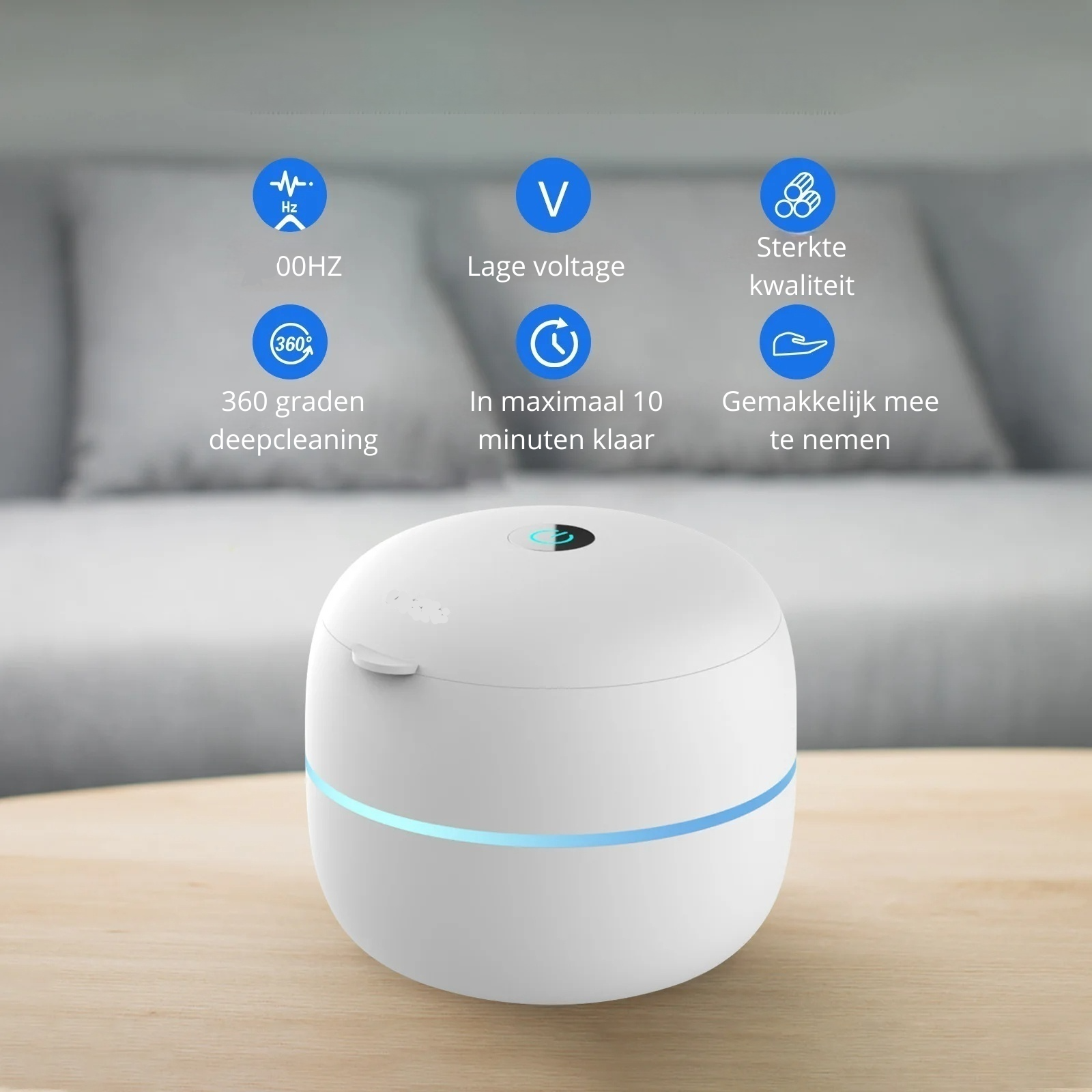 Met de draadloze prothese reiniger reinigt u uw prothese ( kunstgebit ) , splint of tandenknarsbitje in een handomdraai. De ultrasoon reiniger zorgt voor trillen en verwijderd hierdoor de etensresten met behulp van geluidsgolven op 5.800Hz, daar kan geen tandenborstel of reinigingsvloeistof tegen op!